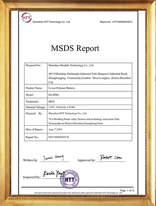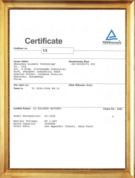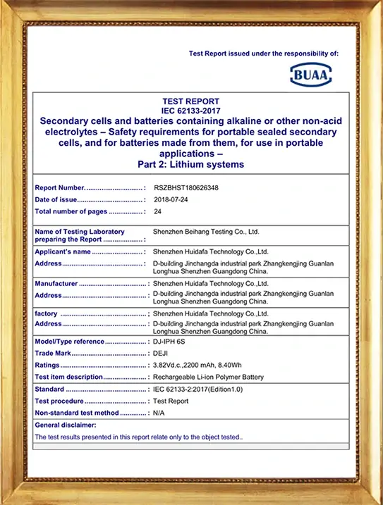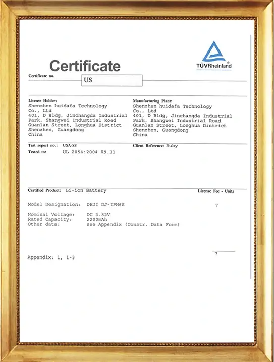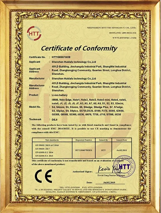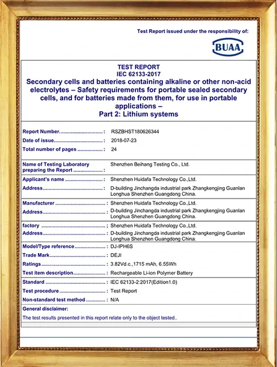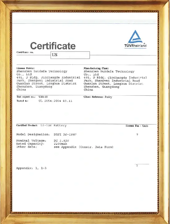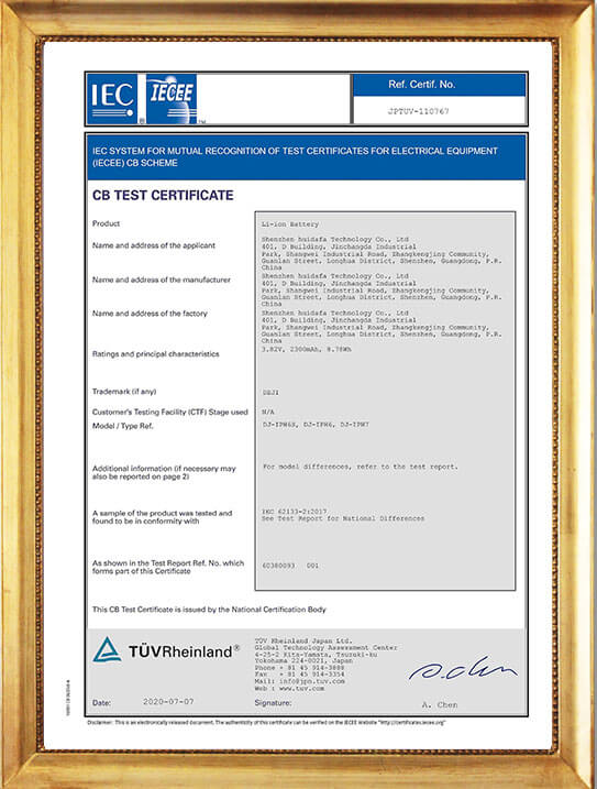 Our DEJI brand battey have CE, FCC, RoHS, PSE, KC, UN 38.3, MSDS, IEC62133, CB, TUV us, UKCA, Anatel Certifications, Our factory also passed ISO9001 Quality Management System.