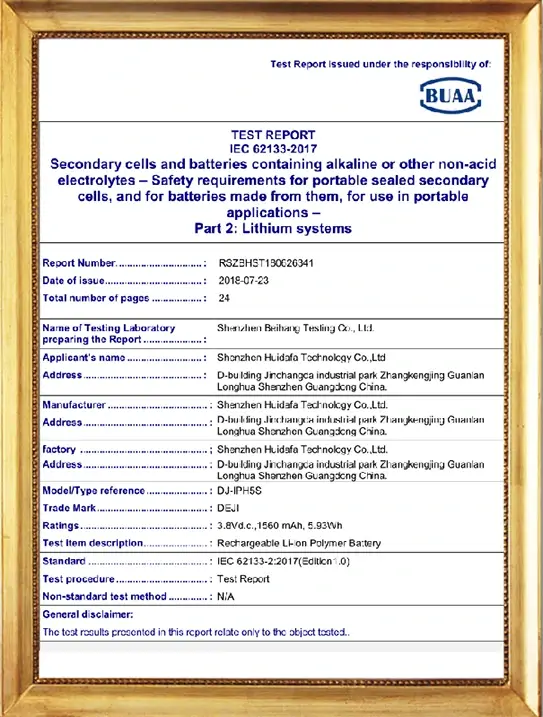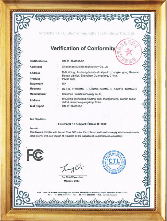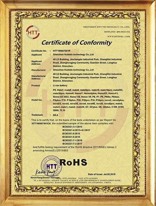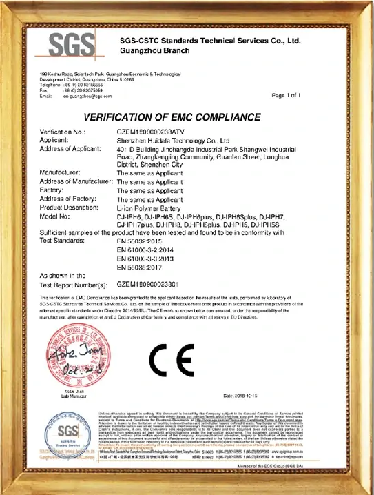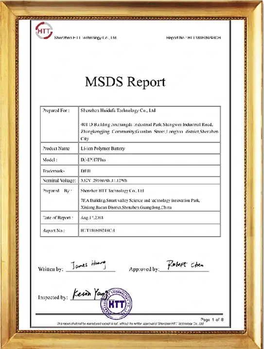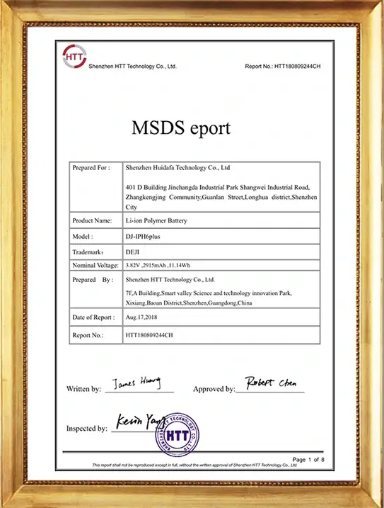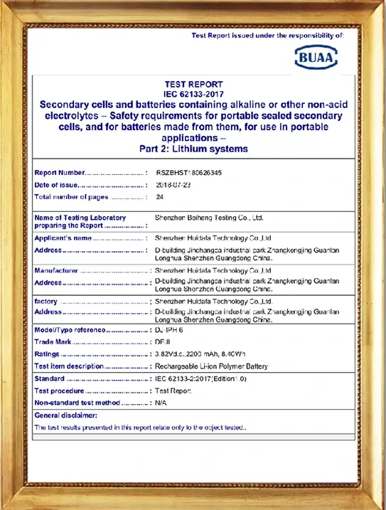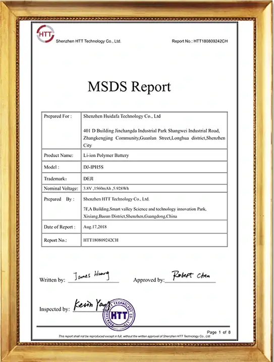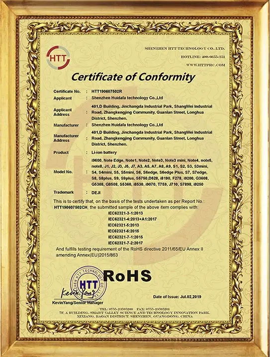 Our DEJI brand battey have CE, FCC, RoHS, PSE, KC, UN 38.3, MSDS, IEC62133, CB, TUV us, UKCA, Anatel Certifications, Our factory also passed ISO9001 Quality Management System.