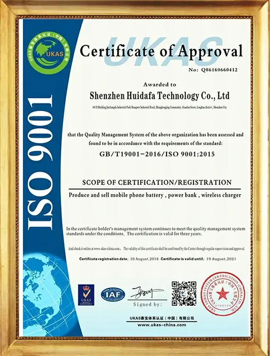 Shenzhen Huidafa technology Co., Ltd. was founded in 2006 and focus on produced mobile phone battery and charger for many years.