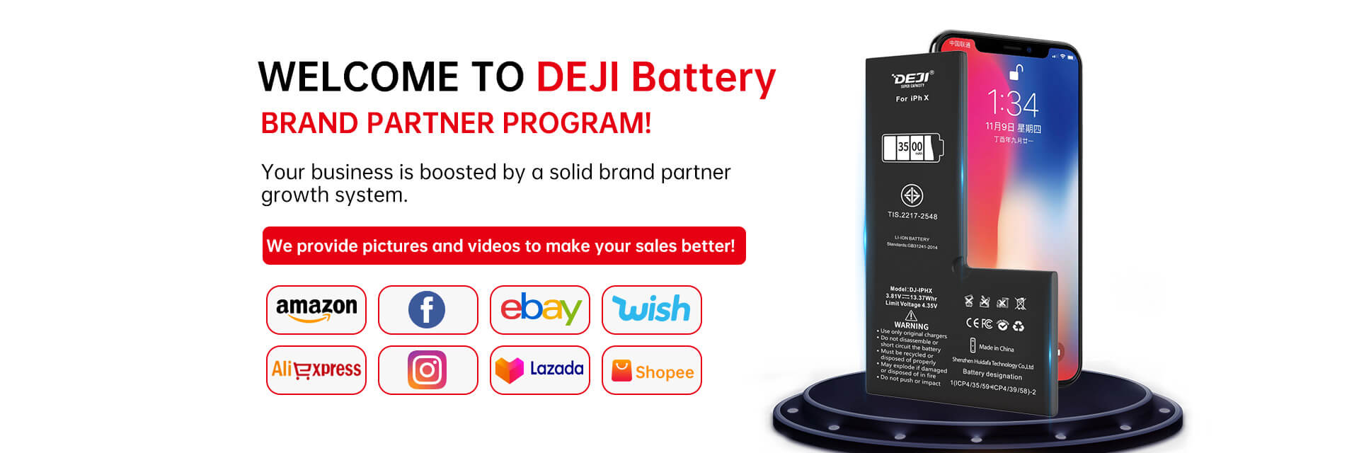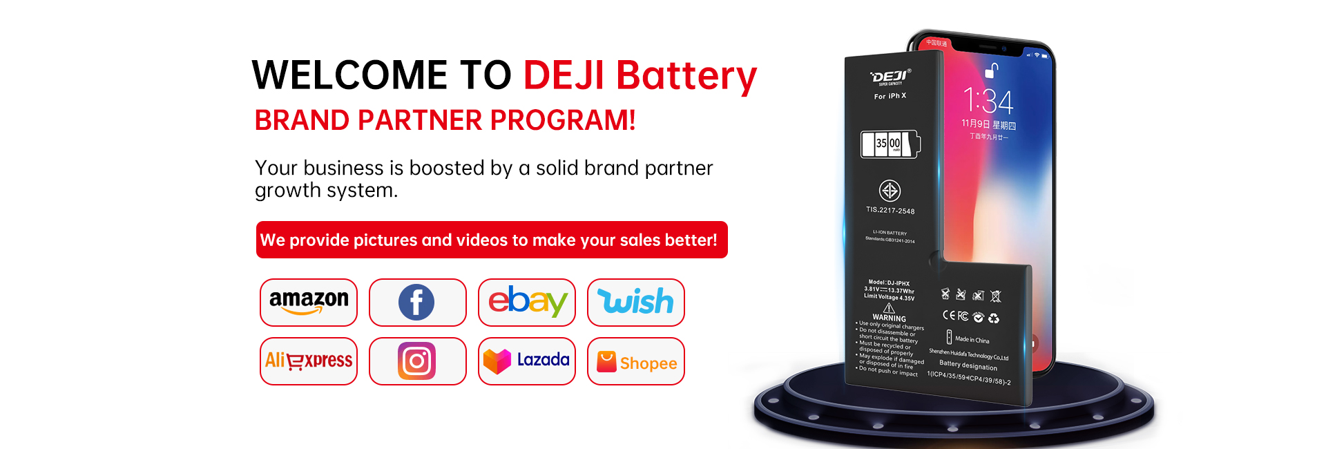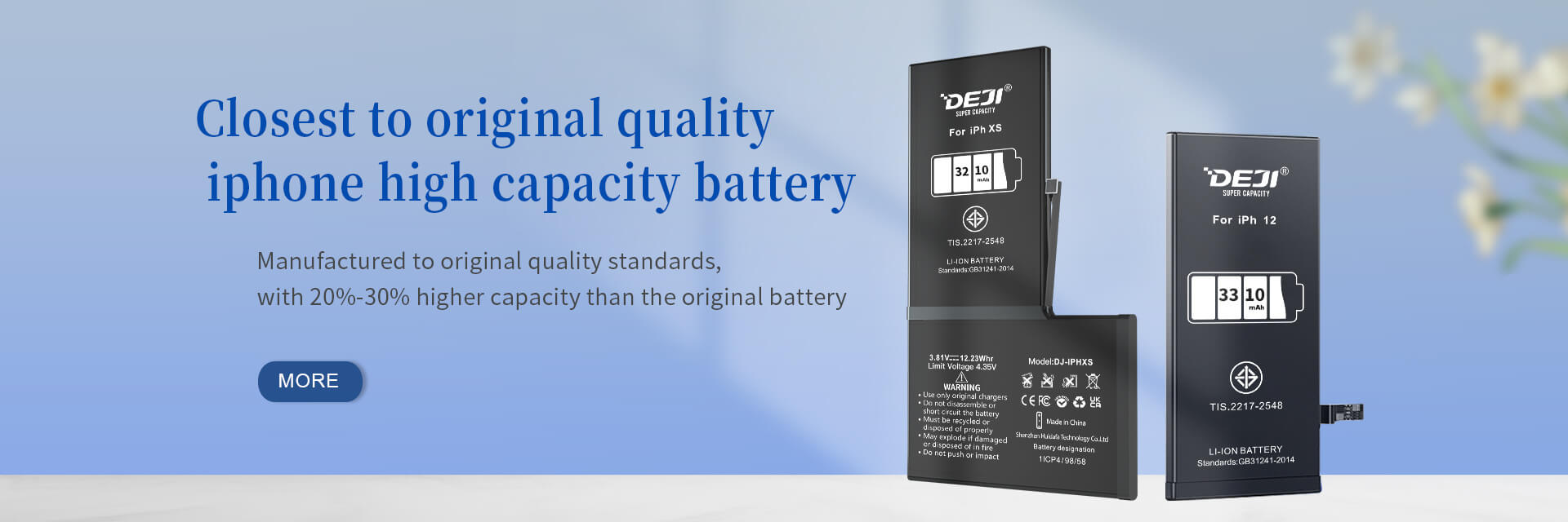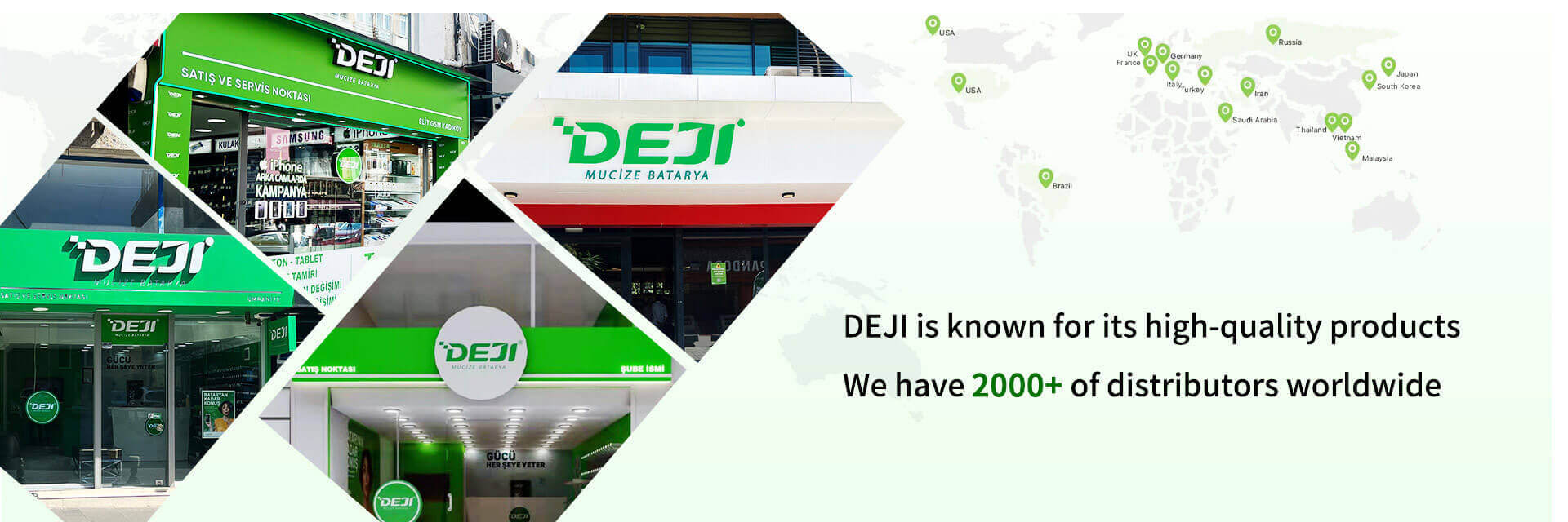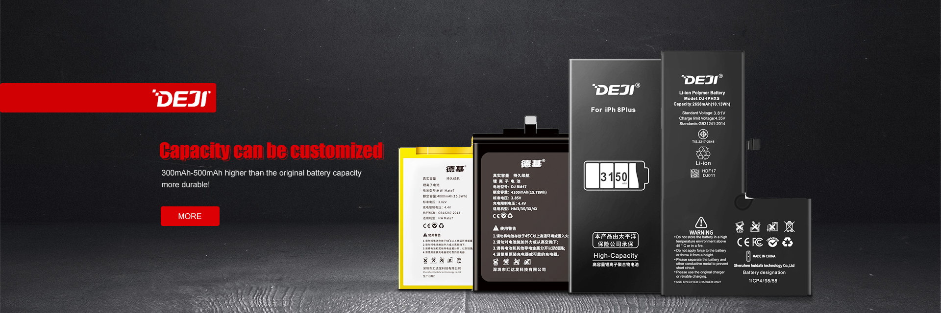 DEJI's mobile phone batteries are manufactured according to original quality standards and are of high quality. We have many agents and distributors worldwide all of whom trust us.