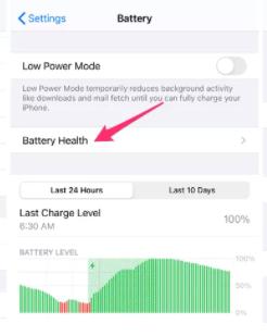 3、Then enter the battery page, in the middle of the page there is a battery health, as shown below: