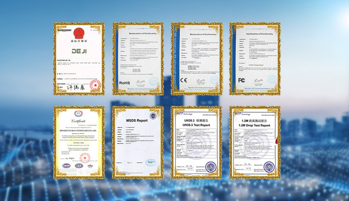 The DEJI brand battery was listed in 2009. It was born based on the corporate philosophy of taking honesty as virtue and quality as the basis, so it was named Deji. The company’s founder Chen Zhenxing and general manager took the lead in research and development, and treated consumers with honesty and integrity. , Suppliers, company employees, based on quality, the company has passed the ISO9001 quality system certification, and the products have passed CE, FCC, ROHS, PSE (Japanese certification), KC (Korea certification), MSDS, UN3.38, IEC62133, TUV Various international certifications such as US certification.