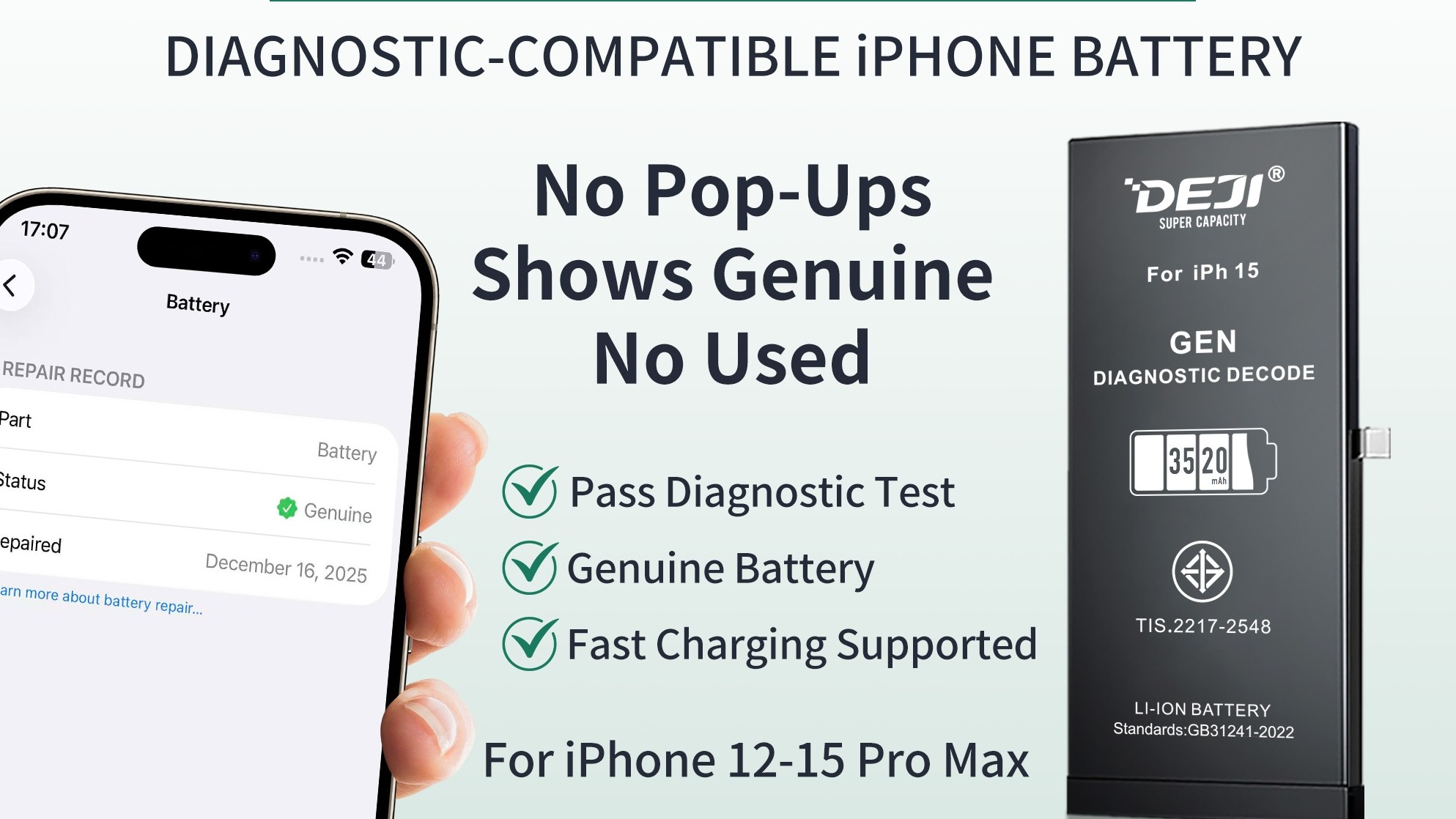 No-solder, Deji iPhone Diagnostics–compatible batteries solve warning pop-ups, r...